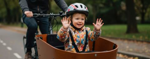 Il faut toutefois un peu de temps pour s'habituer à un vélo cargo. Il est plus long et plus lourd qu'un vélo classique, ce qui implique un rayon de braquage plus large et davantage d’anticipation. Si vos enfants sont assis à l'avant la sécurité est d’autant plus importante: attachez-les correctement et veillez à ce qu’ils portent un casque adapté. Lorsque vous vous garez, assurez-vous de laisser suffisamment de passage sur le trottoir.