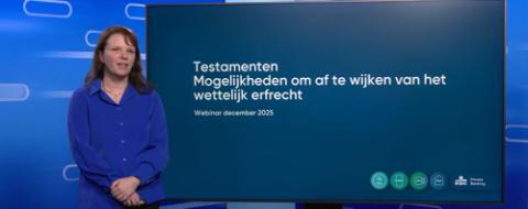 In dit webinar licht Femke Van Oosterwijck, expert Financiële Planning bij KBC Private Banking, aan de hand van een aantal voorbeelden toe in welke gevallen een testament nuttig kan zijn. Kunt u via een testament van het wettelijk erfrecht afwijken?