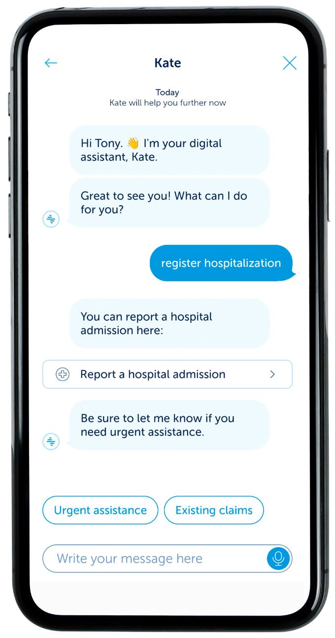 - Quickly and easily report a hospital admission and submit your expenses digitally